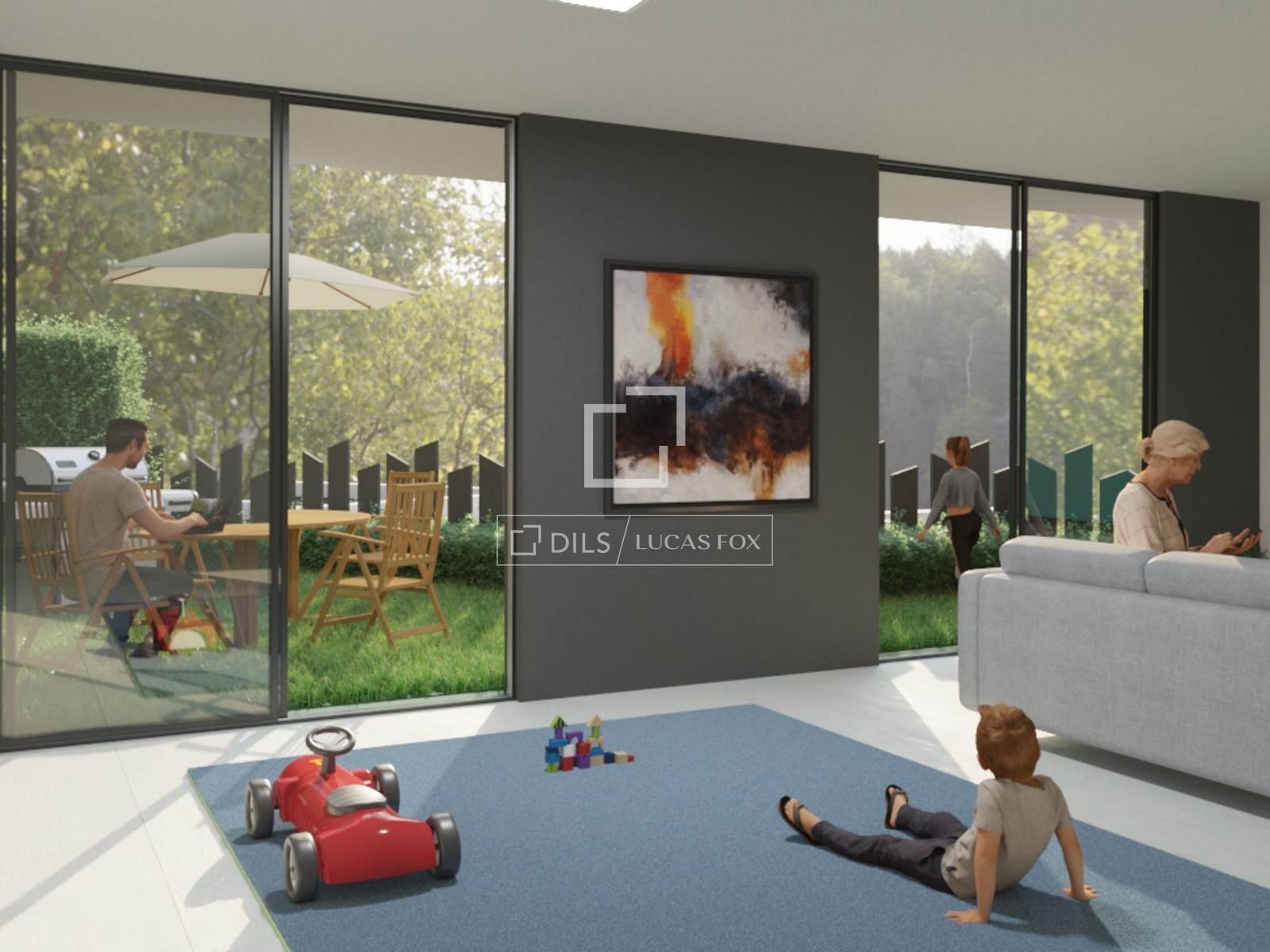 La conception architecturale privilégie la luminosité et la continuité spatiale. Les pièces à vivre principales sont orientées plein sud afin de maximiser la lumière naturelle tout au long de la journée, grâce à de grandes fenêtres et à des intérieurs décloisonnés qui créent une transition fluide entre l'intérieur et l'extérieur.