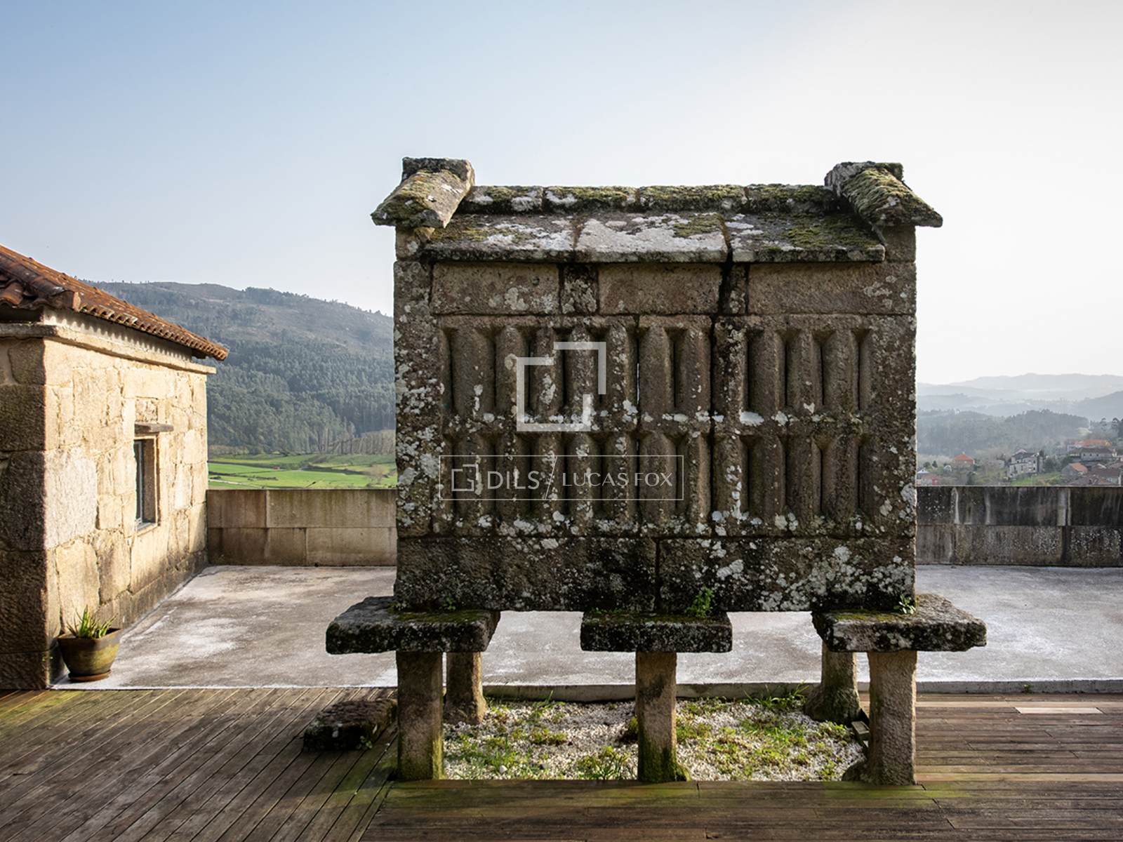 Cette propriété historique en pierre se dresse en position dominante, surplombant les collines ondulantes de la campagne de Cotobade, dans un cadre rural qui reste facilement accessible en voiture depuis le centre-ville de Pontevedra.