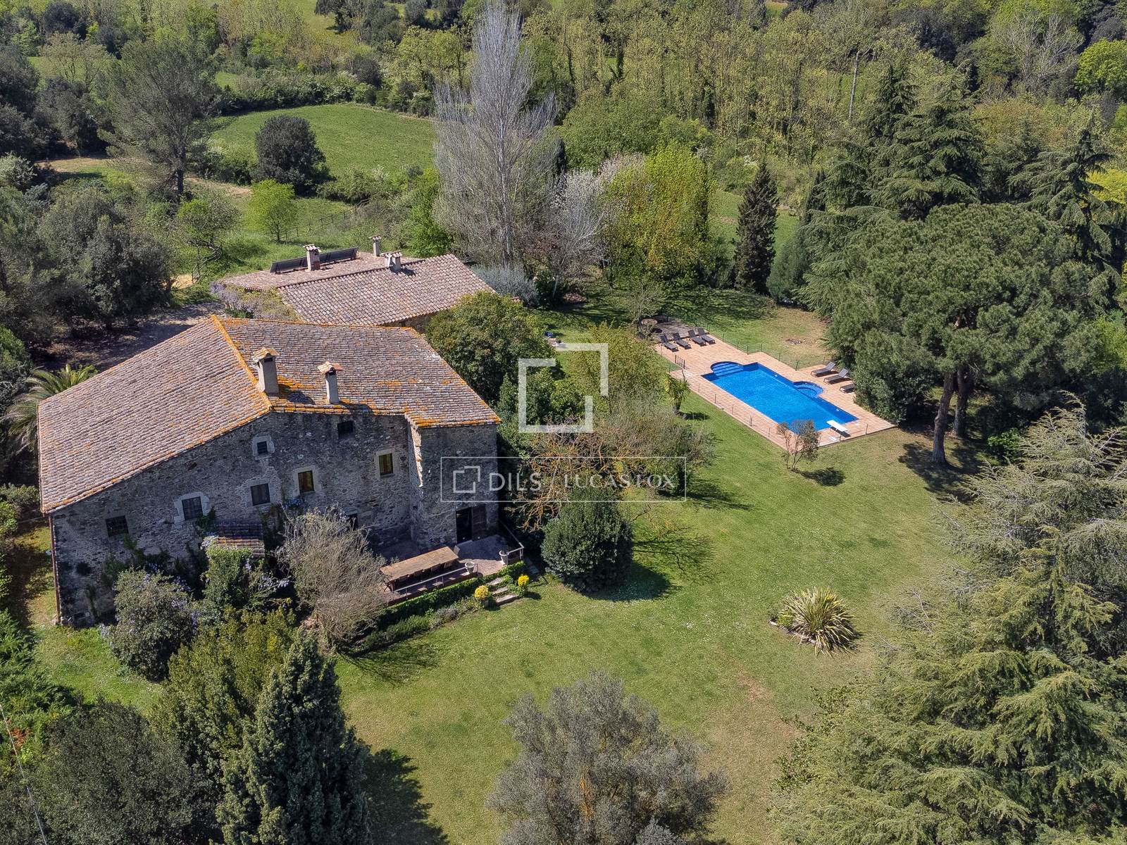 La ferme dans son ensemble compte 20 hectares, dans lesquels se trouvent la ferme et une botte de foin attenante, qui a été entièrement réhabilitée entre 2004 et 2005 et qui fonctionne actuellement comme une fantastique maison d'hôtes totalement indépendante. Autour du mas et de la maison d'amis, s'étend un jardin bucolique avec sa piscine, d'où vous pourrez profiter d'une vue magnifique sur les montagnes et les champs cultivés de la propriété.