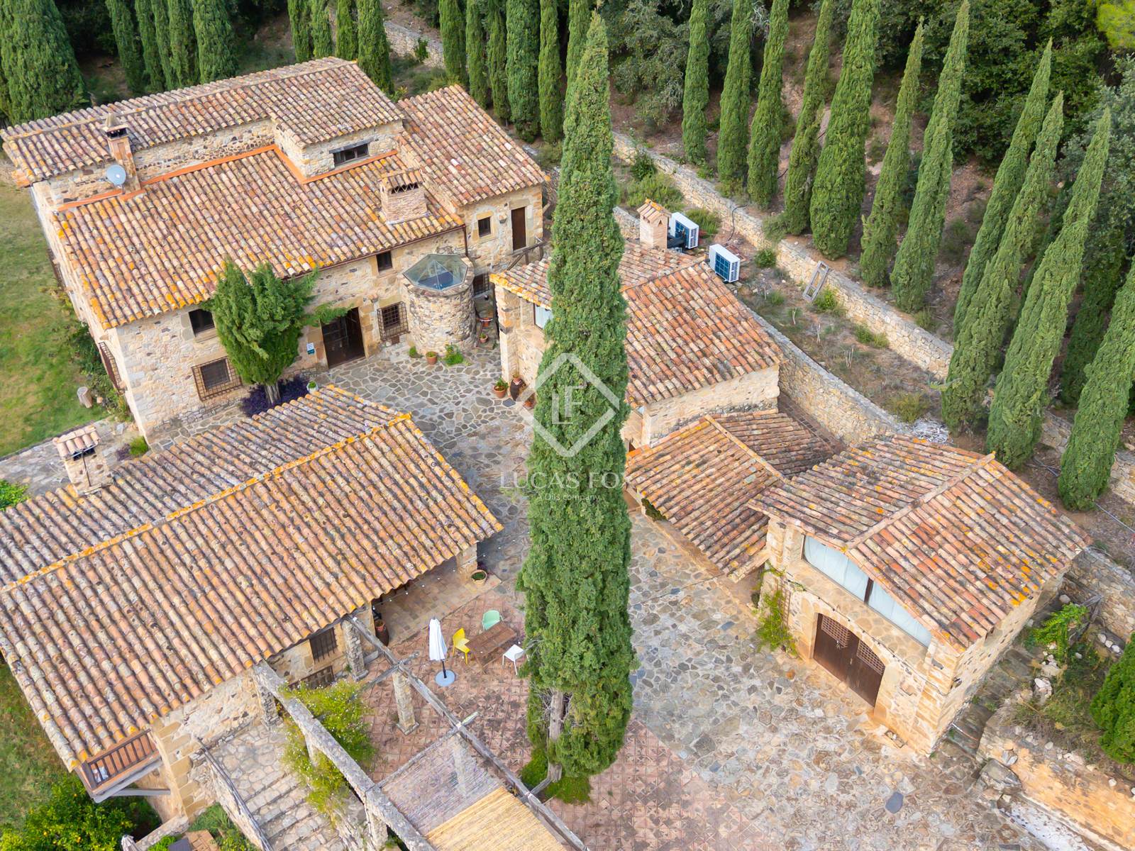 Au cœur du Gironès, où prairies et forêts méditerranéennes se confondent et où la lumière semble s'attarder sur les collines, se dresse une ferme historique qui paraît surgir de la terre. Sa solide et paisible bâtisse de pierre recèle des histoires de générations et offre aujourd'hui une opportunité extraordinaire à ceux qui recherchent un projet authentique, en pleine nature et riche de possibilités.