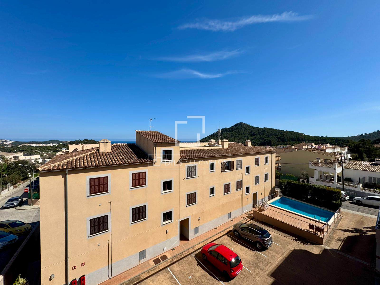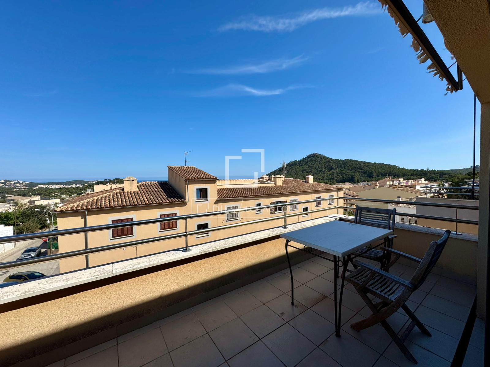 Penthouse de 120 m² avec terrasse et vue mer jusqu'à Minorque, 3 chambres, 2 salles de bains (dont une privative), piscine commune et parking. Situé au deuxième étage sans ascenseur dans un quartier calme de Capdepera, à proximité des plages et des commerces.