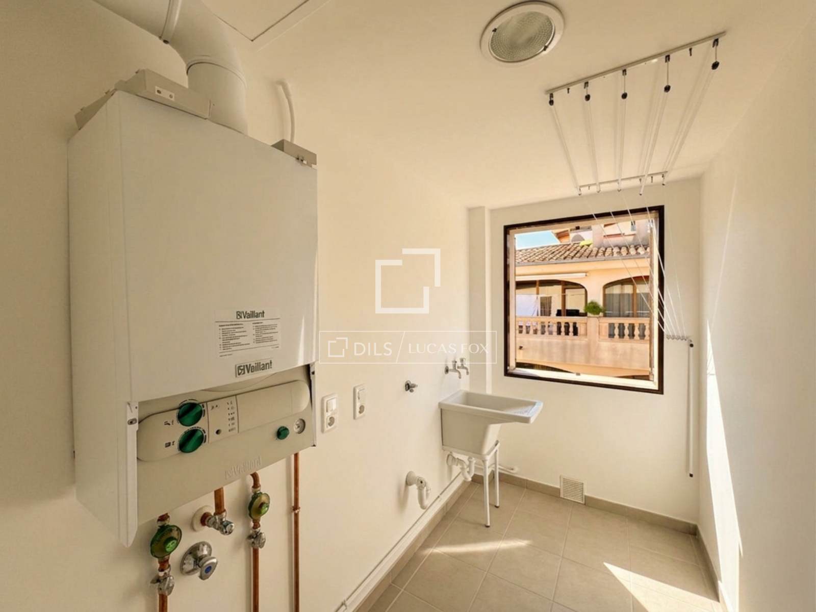 L'espace nuit comprend trois chambres doubles, toutes donnant sur l'extérieur et dotées de placards intégrés. La chambre principale dispose d'une salle de bains privative avec douche, pour plus d'intimité et de confort. La propriété comprend également une deuxième salle de bains complète avec baignoire et une buanderie séparée.