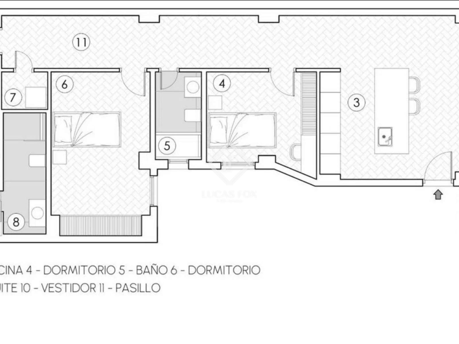 L'appartement se divise en deux espaces distincts. D'un côté, l'espace de vie, près de l'entrée, comprend un vaste séjour-salle à manger avec une charmante cuisine ouverte, équipée d'un îlot central et d'une plaque de cuisson à induction invisible. De l'autre côté, l'espace nuit se compose de trois chambres, dont une avec salle de bains privative, une deuxième salle de bains complète et une buanderie. La chambre principale se distingue particulièrement par ses dimensions généreuses et son dressing spacieux.