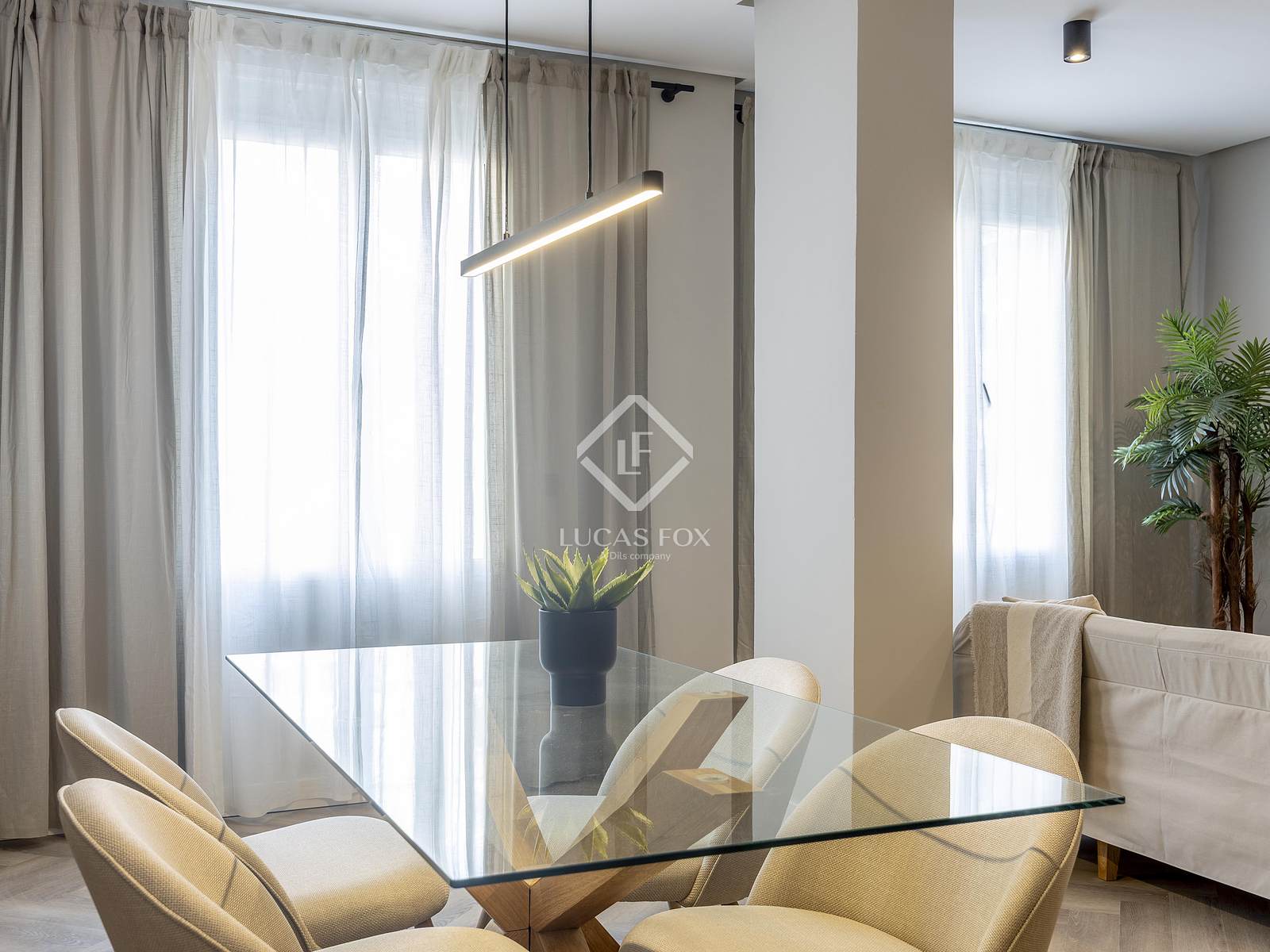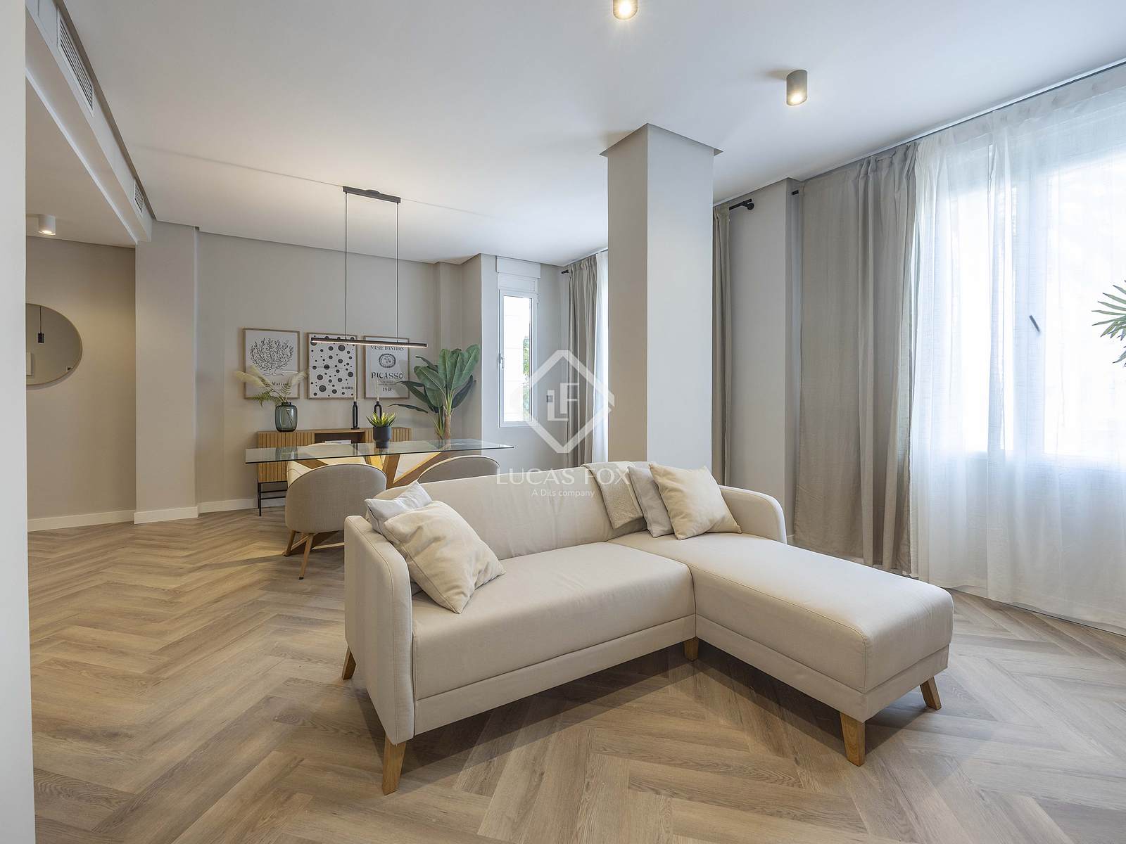 Lucas Fox vous présente ce superbe appartement neuf, entièrement rénové, situé au deuxième étage d'un immeuble de l'avenue Reino de Valencia. Il offre une vue imprenable sur les palmiers emblématiques de cette célèbre avenue valencienne. Niché à l'extrémité de l'avenue, à l'endroit où elle s'élargit, il bénéficie d'une intimité optimale.